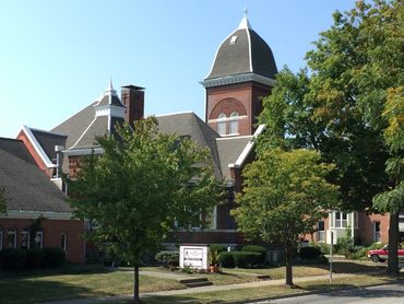 The church first held services in a white frame building on the east side of South Catherine Street (now Ninth Street), just north of the present Richwine Apartment building. Then in 1893, the brick building on Conner Street was built.